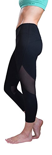 Mesh Capri Yoga Pants Women's Workout Leggings by Yoggir (Small, Black)