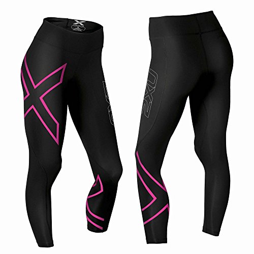 All images of 2xu Womens Mid-rise Compression Tights, Black/cerise Pink, X-small